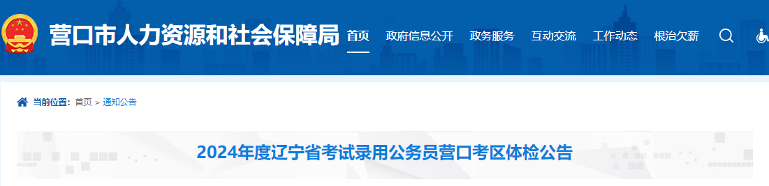 2024年度遼寧省考試錄用公務(wù)員營(yíng)口考區(qū)體檢人選已在營(yíng)口市人力資源和社會(huì)保障局網(wǎng)站發(fā)布,現(xiàn)將體檢有關(guān)事項(xiàng)公告如下。