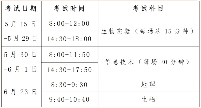 地理50分、生物50分、生物實(shí)驗(yàn)4分、信息技術(shù)15分。