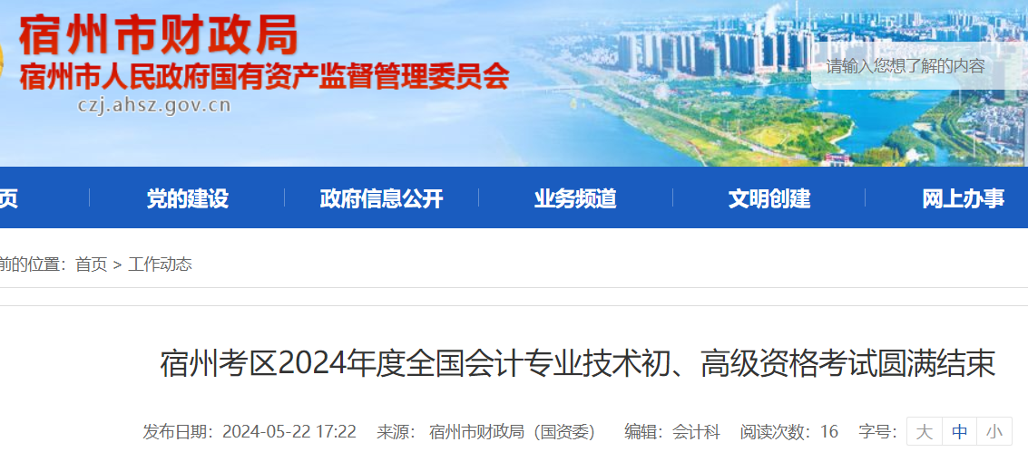 小編根據(jù)宿州市財政局發(fā)布“宿州考區(qū)2024年度全國會計專業(yè)技術(shù)初、高級資格考試圓滿結(jié)束”得知,安徽宿州2024年高會考試圓滿結(jié)束,高級報名54人,參考42人,參考率77.78%。
