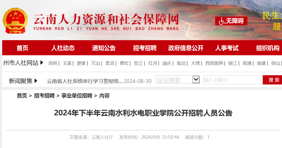 2024年下半年云南水利水電職業(yè)學(xué)院公開招聘人員公告已發(fā)布,提交報(bào)名申請(qǐng)時(shí)間:2024年9月19日9:00至9月25日18:00?,F(xiàn)將招聘公告原文發(fā)布如下: