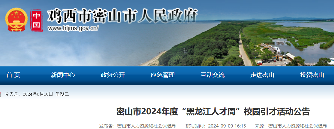 按照省委組織部、省人社廳《關(guān)于開展2024年度“黑龍江人才周”校園引才活動的通知》要求,經(jīng)市委、市政府同意,雞西市人力資源和社會保障局核準,決定開展密山市2024年度“黑龍江人才周”校園引才活動,現(xiàn)將有關(guān)事項公告如下: