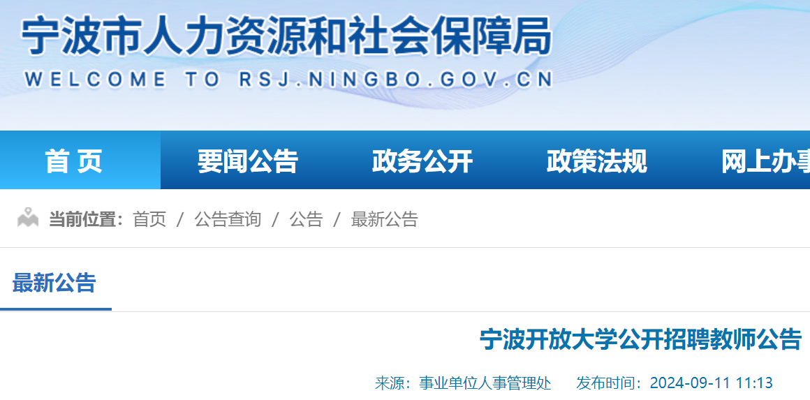 2024年浙江寧波開放大學(xué)公開招聘教師公告已發(fā)布,報(bào)名時(shí)間:2024年9月19日起至2024年9月29日。現(xiàn)將招聘公告原文發(fā)布如下: