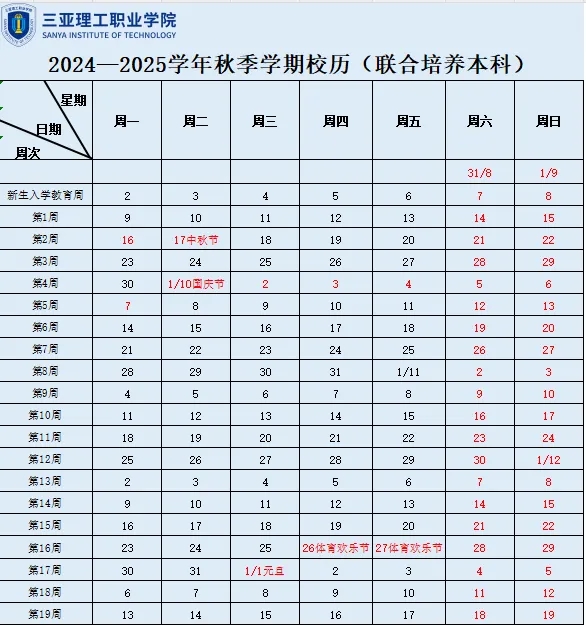 海南三亞理工職業(yè)學(xué)院2024—2025學(xué)年第一學(xué)期校歷安排已公布,為您整理的《海南三亞理工職業(yè)學(xué)院2024—2025學(xué)年第一學(xué)期校歷安排》,供大家查閱。