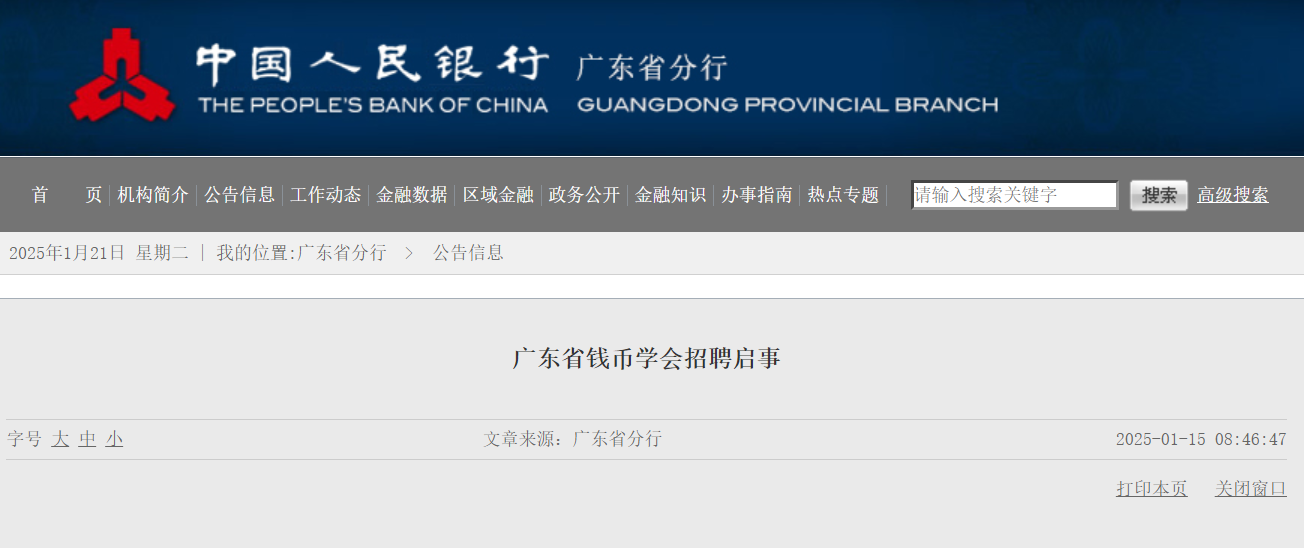 2025年廣東省錢幣學(xué)會(huì)招聘啟事已發(fā)布,報(bào)名時(shí)間:2025年1月27日前,現(xiàn)將招聘公告原文發(fā)布如下:
