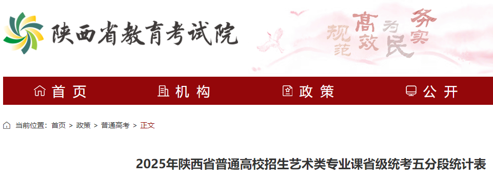 從陜西省教育考試院了解到,2025年陜西普通高校招生藝術(shù)類專業(yè)課省級統(tǒng)考五分段統(tǒng)計表公布。具體如下: