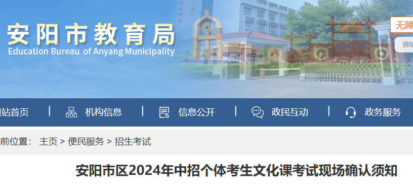 從安陽(yáng)市教育局了解到,河南安陽(yáng)市區(qū)2024年中考招生個(gè)體考生文化課考試現(xiàn)場(chǎng)確認(rèn)須知已公布,具體如下: