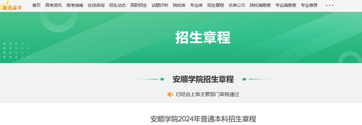 從陽光高考平臺獲悉,2024年貴州安順學院普通本科招生章程已發(fā)布,提醒各位考生認證閱讀招生章程,選擇適合的專業(yè)報考。