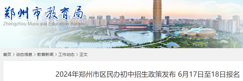 從鄭州市教育局了解到,2024年河南鄭州市區(qū)民辦初中招生政策已公布,6月17日至18日報名。具體如下: