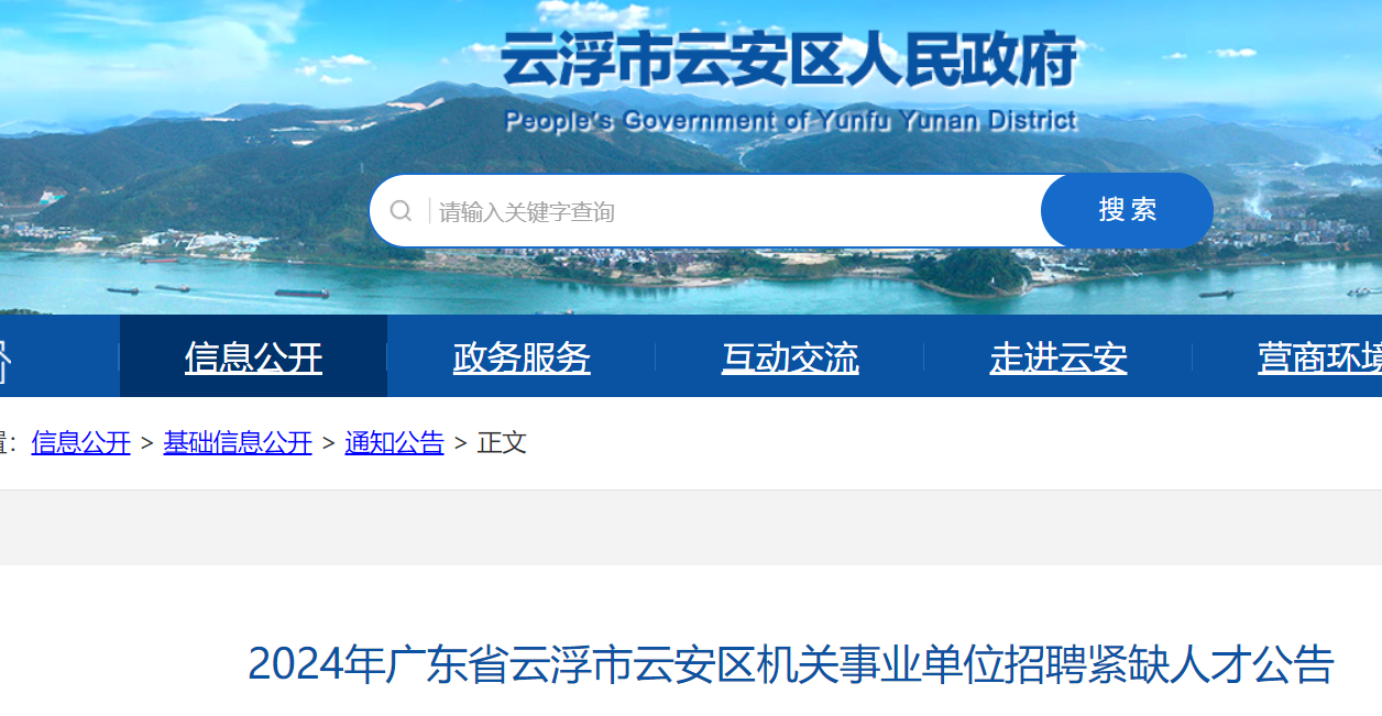 為加強(qiáng)我區(qū)機(jī)關(guān)事業(yè)單位人才隊伍建設(shè),切實提高政務(wù)服務(wù)水平,2024年面向社會公開招聘5名機(jī)關(guān)事業(yè)單位緊缺人才,具體崗位詳見《2024年云安區(qū)機(jī)關(guān)事業(yè)單位招聘緊缺人才崗位需求表》(附件1),現(xiàn)將有關(guān)事項公告如下: