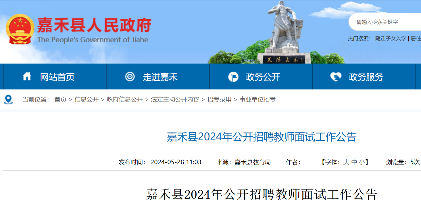 2024年湖南郴州嘉禾縣公開招聘教師面試工作公告已發(fā)布,面試時間:2024年6月1日(星期六)?,F(xiàn)將原文發(fā)布如下: