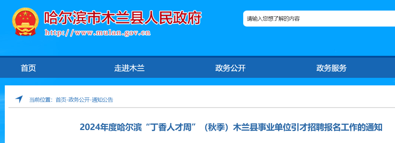 根據(jù)《2024年度哈爾濱“丁香人才周”(秋季)事業(yè)單位引才招聘公告》,現(xiàn)將木蘭縣引才招聘網(wǎng)上報(bào)名事宜通知如下: