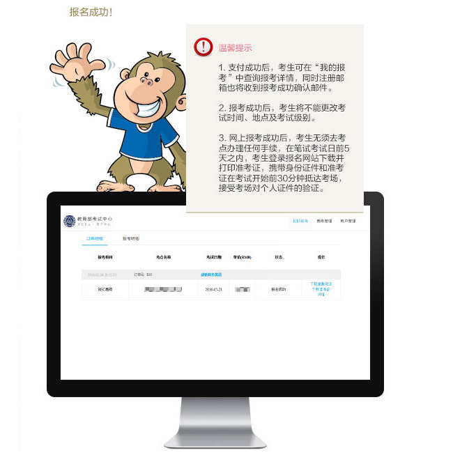 考生報(bào)名時(shí)須如實(shí)、準(zhǔn)確提交身份證件信息,包括:證件類型、證件號(hào)碼、中文姓名、拼音姓名、性別和出生日期,確認(rèn)提交后,不得更改,并將打印在準(zhǔn)考證上;考生在考試日須攜帶與準(zhǔn)考證信息一致的有效身份證件原件。