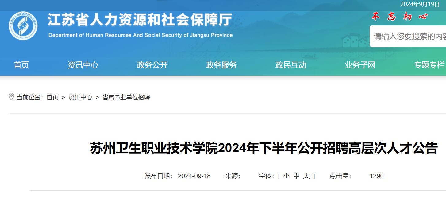 蘇州衛(wèi)生職業(yè)技術學院是江蘇省衛(wèi)生健康委員會主管的全額撥款事業(yè)單位,位于江蘇省蘇州市科華路28號。為更好地選拔優(yōu)秀適崗人才,充實人才隊伍,優(yōu)化師資結構,蘇州衛(wèi)生職業(yè)技術學院現(xiàn)面向社會公開招聘優(yōu)秀人才。根據(jù)《江蘇省事業(yè)單位公開招聘人員辦法》等規(guī)定,現(xiàn)將有關事項公告如下:一、報考條件