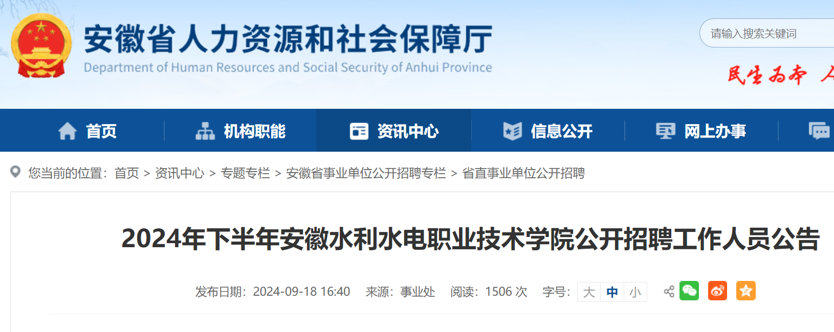 根據(jù)《事業(yè)單位人事管理條例》和《安徽省事業(yè)單位公開招聘人員暫行辦法》等有關規(guī)定,現(xiàn)就安徽水利水電職業(yè)技術學院2024年下半年公開招聘工作人員有關工作公告如下。