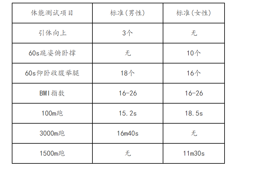 3.航空安全員體能考核項(xiàng)目及標(biāo)準(zhǔn)(具體按民航局新標(biāo)準(zhǔn)及要求執(zhí)行):