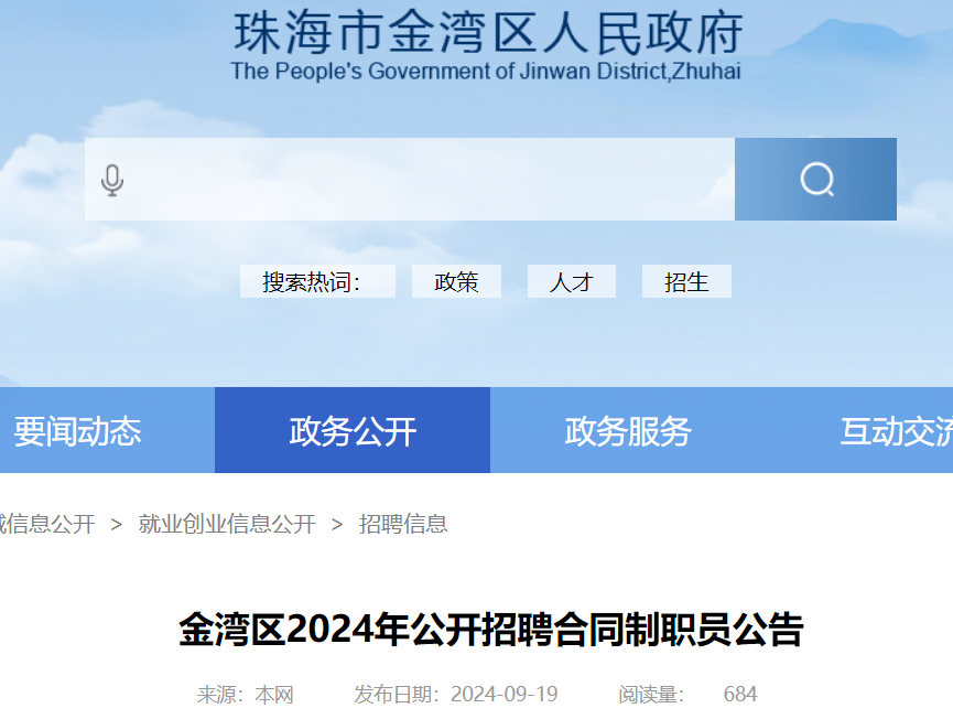 小編根據(jù)珠海金灣區(qū)人力資源和社會(huì)保障局發(fā)布“金灣區(qū)2024年公開(kāi)招聘合同制職員公告”得知,2024廣東珠海金灣區(qū)招聘合同制職員29人,報(bào)名時(shí)間為2024年9月26日至10月7日。