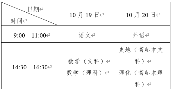 2024年浙江衢州成人高考考試時間為10月19日、20日。具體時間安排如下: