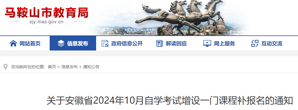 從馬鞍山市教育局了解到,安徽2024年10月自學(xué)考試增設(shè)一門課程補(bǔ)報(bào)名的通知已公布,考試時(shí)間:2024年10月26日(周六)下午14:30—17:00。具體如下: