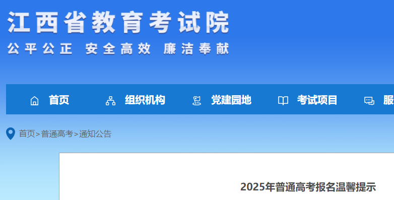 從江西省教育考試院了解到,2025年江西普通高考報名溫馨提示已公布,江西2025年普通高考網(wǎng)上報名工作將于2024年11月初進行。具體如下:
