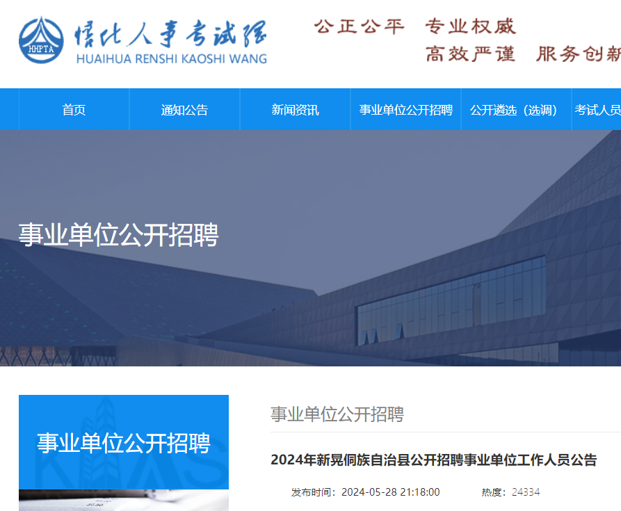 小編根據(jù)懷化人事考試網(wǎng)發(fā)布”2024年新晃侗族自治縣公開招聘事業(yè)單位工作人員公告“得知,2024湖南懷化市新晃侗族自治縣招聘事業(yè)單位工作人員20人,報名時間為2024年6月11日 - 6月13日。