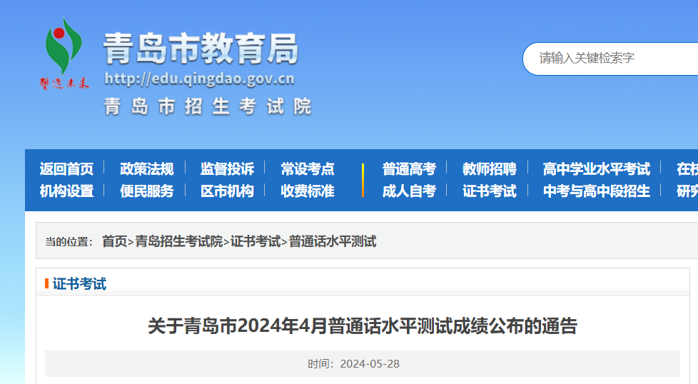 從青島市教育局獲悉,2024年4月山東青島普通話水平測試成績查詢通告已公布,即日起查分,具體詳情如下: