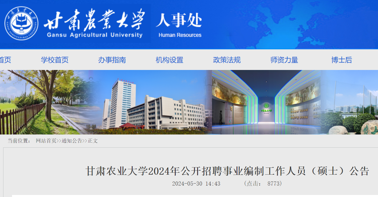 2024年甘肅農(nóng)業(yè)大學(xué)公開招聘事業(yè)編制工作人員(碩士)公告已發(fā)布,報名時間:2024年5月30日00:00至6月5日12:00。現(xiàn)將招聘公告原文發(fā)布如下: