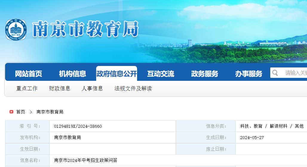 南京市2024年中考招生政策問答