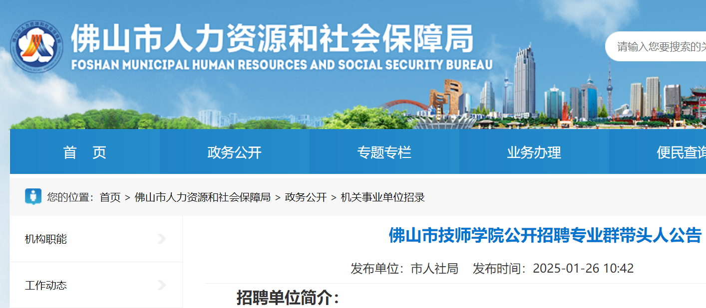 2025年廣東佛山市技師學(xué)院公開招聘專業(yè)群帶頭人公告已發(fā)布,報(bào)名時(shí)間:2025年2月7日9:00至2025年2月28日17:00。現(xiàn)將招聘公告原文發(fā)布如下: