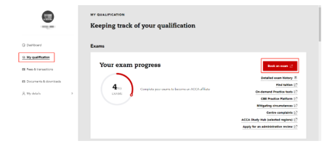 途徑2:點擊左側(cè)導(dǎo)航欄的“My qualification”,接著右側(cè)出現(xiàn)新頁面,在“Exams”下點擊紅色“Book anexam”