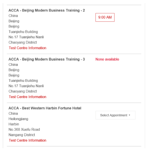 若考點顯示None available,則表明此考點在該考季暫不開放,或者可能該考點考位已滿訂。