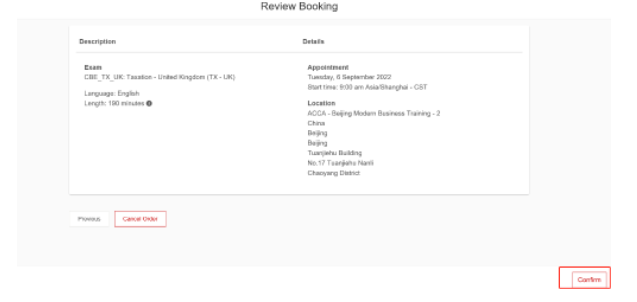 再次確定所預(yù)約考試的信息如果確認(rèn)無誤,點擊右下角“Confirm。