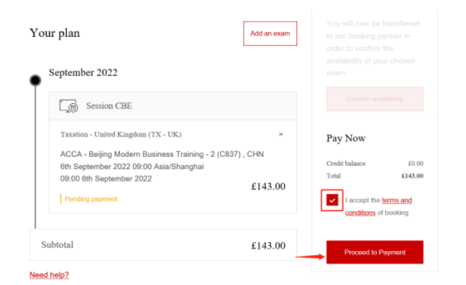在terms and conditions前打鉤后點擊“Proceed to Payment支付考試費。