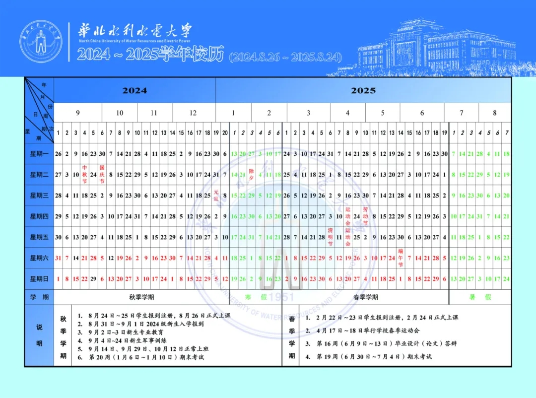 1.2024-2025學年度河南華北水利水電大學校歷 篇一