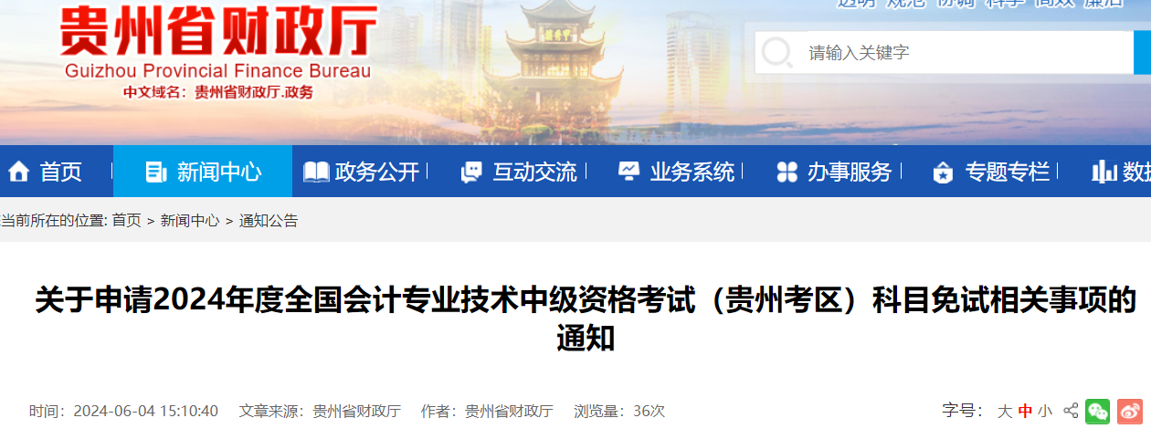 小編根據(jù)貴州省財(cái)政廳發(fā)布“關(guān)于申請(qǐng)2024年度全國(guó)會(huì)計(jì)專(zhuān)業(yè)技術(shù)中級(jí)資格考試(貴州考區(qū))科目免試相關(guān)事項(xiàng)的通知”得知,貴州關(guān)于2024年中級(jí)會(huì)計(jì)考試科目免試時(shí)間為即日起至6月28日12:00截止,法定工作日期間,提交申請(qǐng),逾期不予受理。