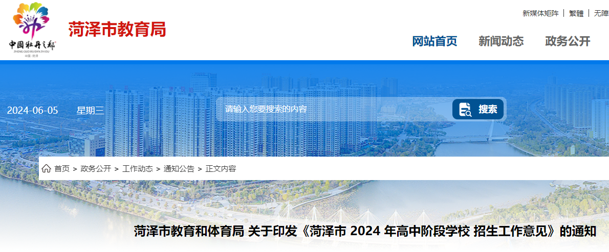 根據(jù)菏澤市教育局公布的《山東菏澤市2024年高中階段學(xué)校招生工作意見(jiàn)》了解到,2024年山東菏澤中考招生錄取與注冊(cè)須知已公布。具體如下: